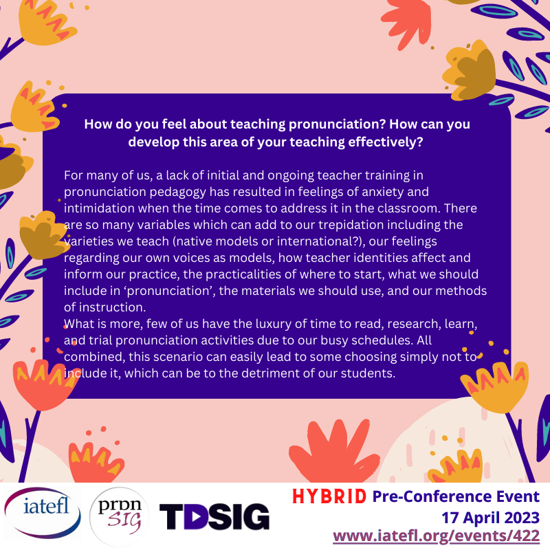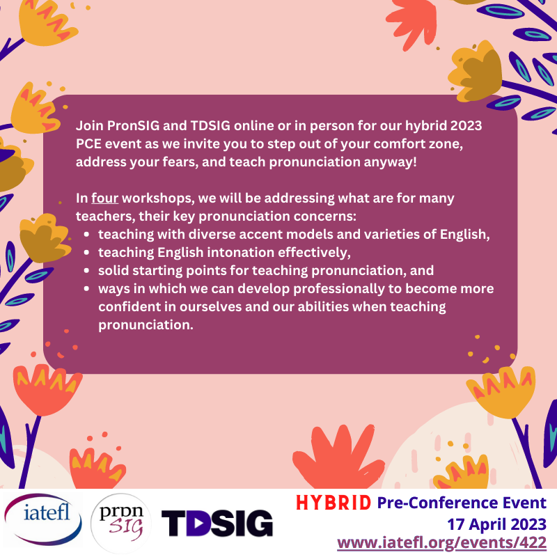 Join IATEFL Pronunciation Special Interest Group (PronSIG) and Teacher Development Special Interest Group (TDSIG) for their 2023 Pre-Conference Event on 17 April 2023!