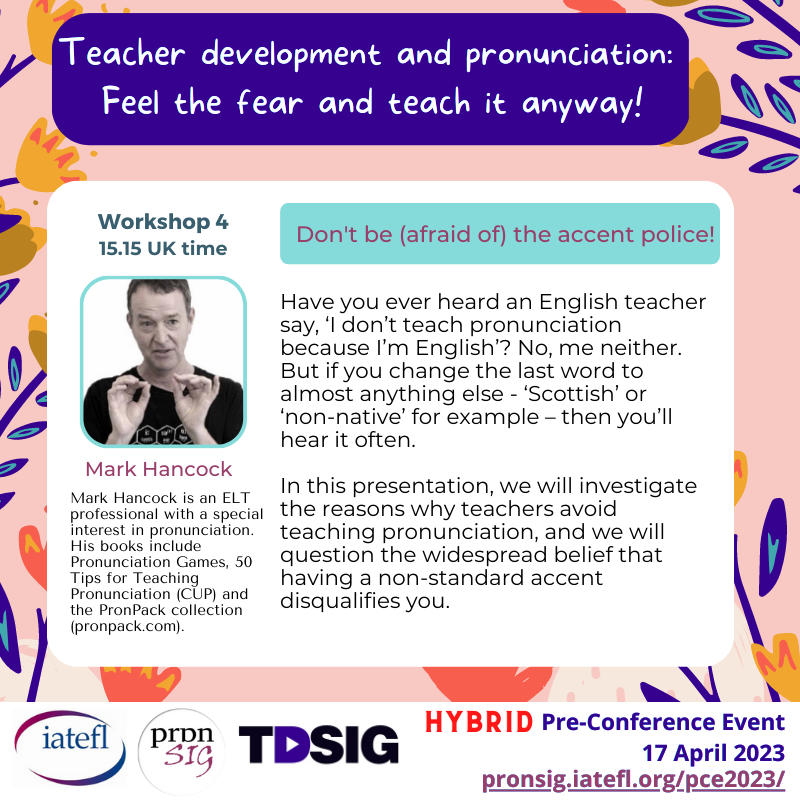 Teacher development and pronunciation: Feel the fear and teach it anyway!, PronSIG & TDSIG Pre-Conference Event (hybrid PCE) at IATEFL 2023, the 56th International Conference & Exhibition in Harrogate, UK