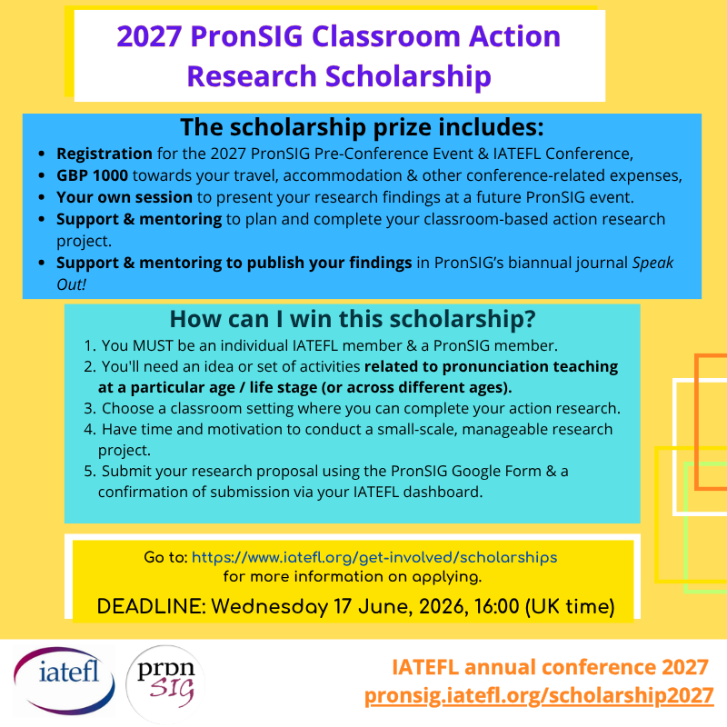If this sounds like you, then apply for the 2027 IATEFL PronSIG Action Research Scholarship!