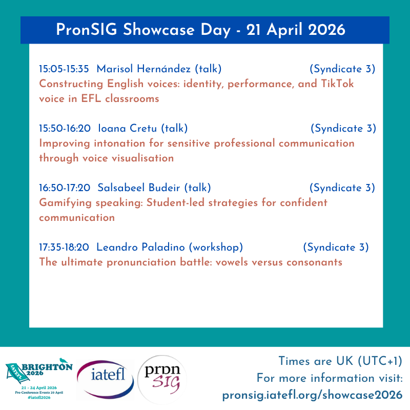 Join us for our PronSIG Showcase Day at IATEFL 2026 (58th International Conference & Exhibition) on Tuesday, 21st April 2026!