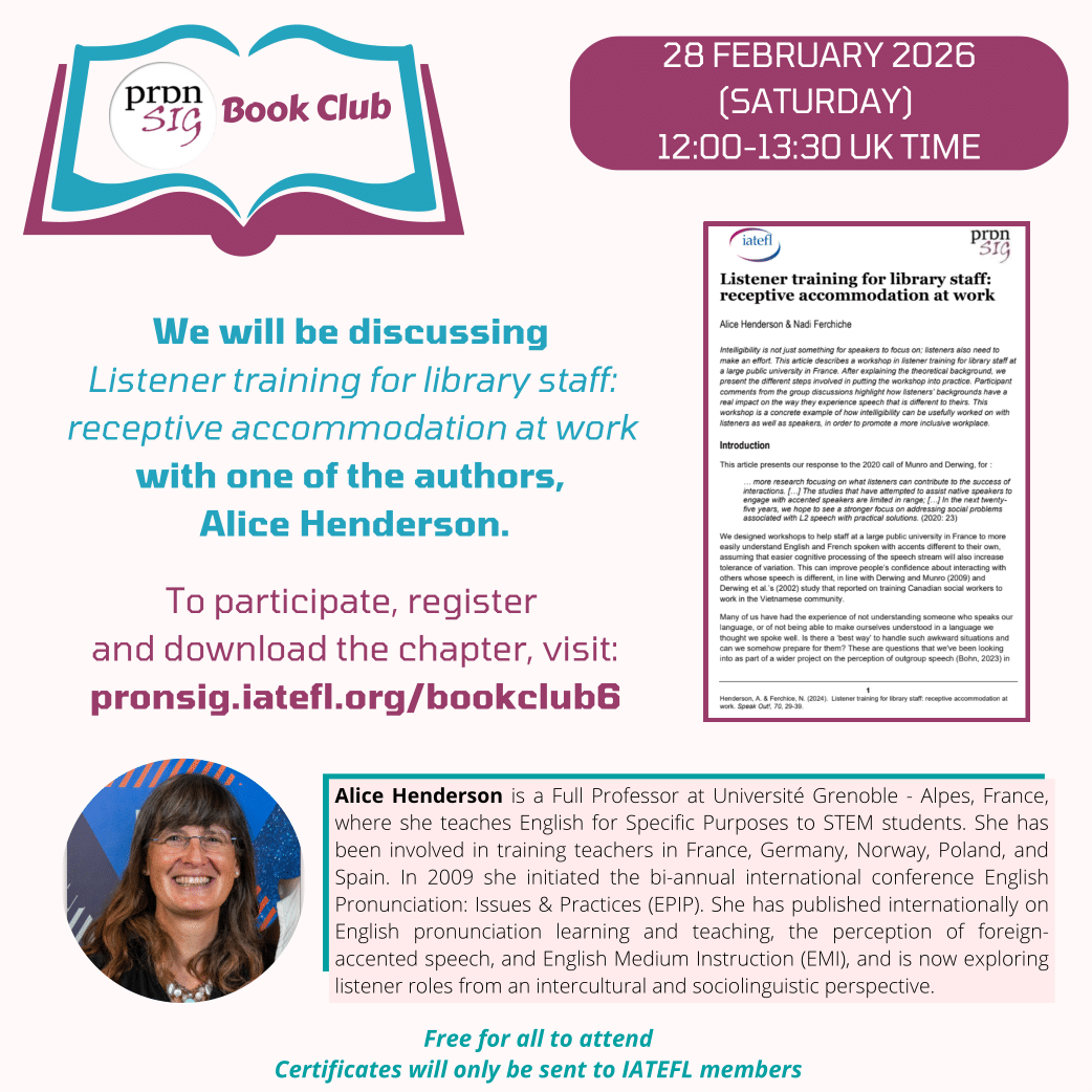 First online PronSIG Members’ Book Club meeting – for PronSIG members only!